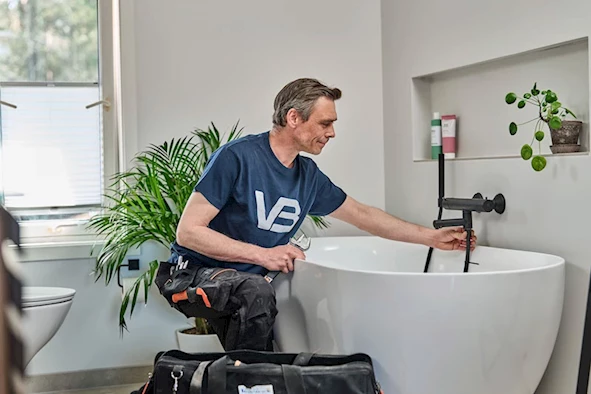 Skal du pusse opp badet? Snakk med oss! Vi tar oss av alt: fra å finne riktig baderomsløsning til å innhente de rette håndverkerne til jobben. Be om tilbud på produkter eller på ditt rørleggeroppdrag, også gulvvarme – vi utfører fagmessig arbeid.